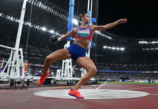 9月14日,美國選手奧爾曼在比賽中試投。最終,她獲得冠軍。新華社記者 宋彥樺 攝