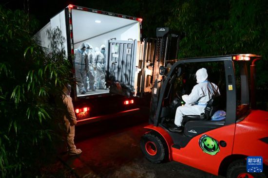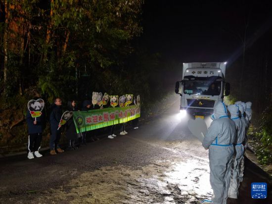 1月28日凌晨,大熊貓“曉曉”“蕾蕾”抵達中國大熊貓保護研究中心雅安基地。新華社發(中國大熊貓保護研究中心供圖)